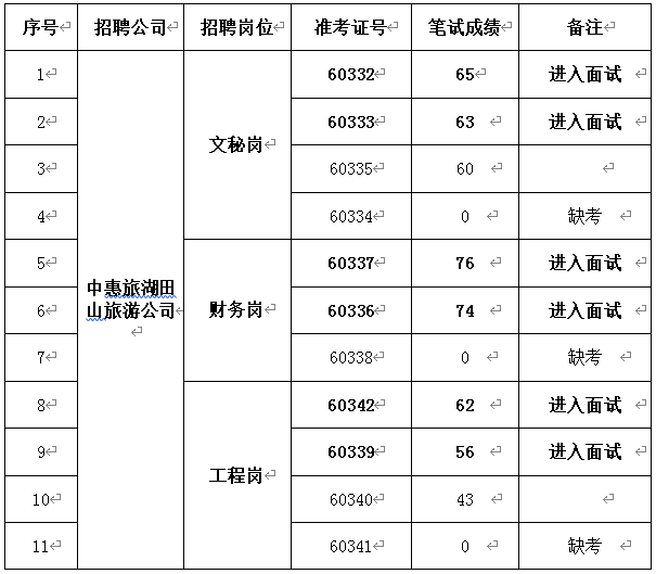 根據(jù)《黃山中惠旅湖田山旅游開發(fā)有限公司招聘員工考試公告》,筆試工作已于2019年12月15日上午結(jié)束,現(xiàn)將筆試成績及進(jìn)入面試人員名單公布如下: