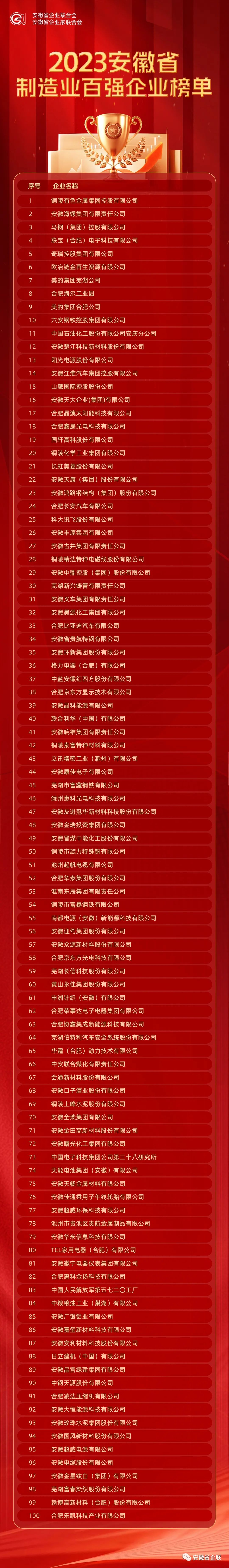 附件:2023安徽省百強企業(yè)、制造業(yè)、服務(wù)業(yè)百強企業(yè)名單