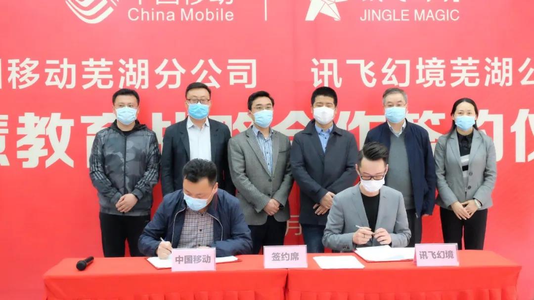 鏡湖區(qū)副區(qū)長束曉偉及政府領導、相關單位負責人,訊飛幻境政企事業(yè)部執(zhí)行總裁李寧、中國移動蕪湖分公司總經(jīng)理楊震等出席并見證簽約儀式,共同為雙方“智慧教育合作基地”揭牌。