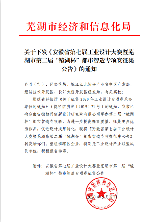 為進(jìn)一步加快蕪湖市現(xiàn)代制造產(chǎn)業(yè)的升級轉(zhuǎn)型,加速工業(yè)設(shè)計與制造的融合,培養(yǎng)工業(yè)設(shè)計人才,決定舉辦安徽省第七屆工業(yè)設(shè)計大賽暨蕪湖市第二屆“鏡湖杯”都市智造專項(xiàng)賽。