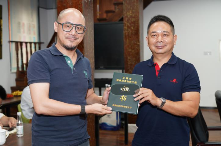 會議開始前,鏡湖區(qū)經(jīng)信局局長方仲明向企業(yè)授予安徽省第七批信息消費(fèi)創(chuàng)新產(chǎn)品證書。