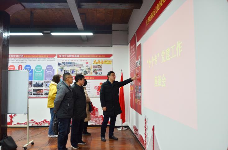12月10日,市市場(chǎng)監(jiān)督管理局個(gè)體私營(yíng)經(jīng)濟(jì)監(jiān)督管理科負(fù)責(zé)人、市小個(gè)專黨建工作辦公室主任邾立華一行來園開展“小個(gè)?!秉h建工作評(píng)審會(huì),大礱坊科技文化園黨委書記卞國琛、第一支部書記褚雪敏作黨建工作匯報(bào)。